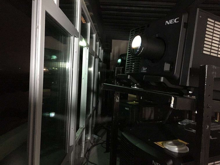 看臺兩側(cè)各安裝6臺NEC PH3501QL+工程投影機(jī)