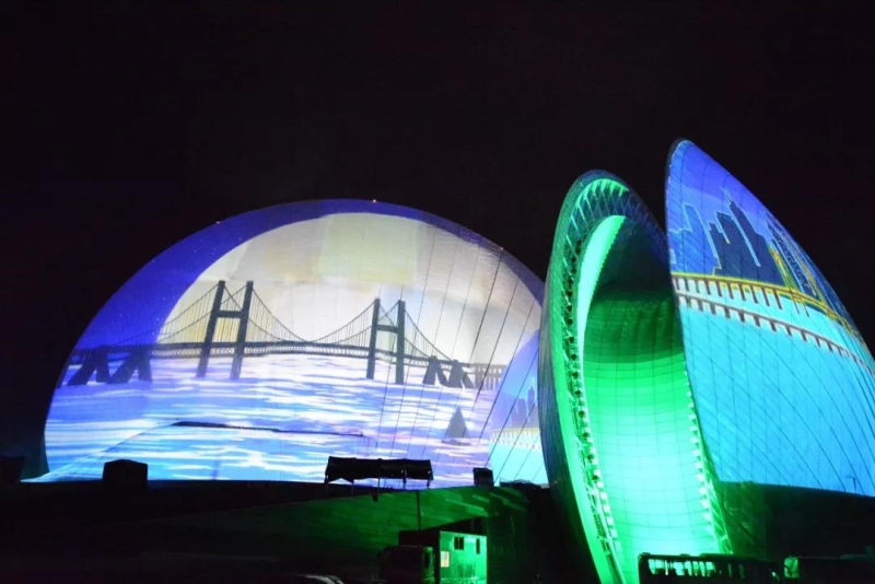 珠生于貝,貝生于海。珠海僅用40年,從小漁村發(fā)展成現(xiàn)代化大都市。新時代的新名片在夜幕之下,數(shù)十臺NEC 4萬流明4K雙色激光工程投影機,將城市的時代變遷躍然于大劇院建筑之上。在現(xiàn)場絢爛燈光協(xié)調(diào)配合下,一大一小的珠海大劇院建筑墻體,宛如兩顆微微張合的貝殼,將珠海大劇院變成了香爐灣上最美的明珠。